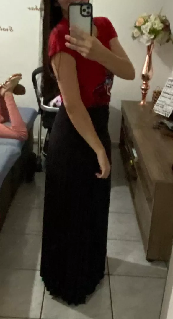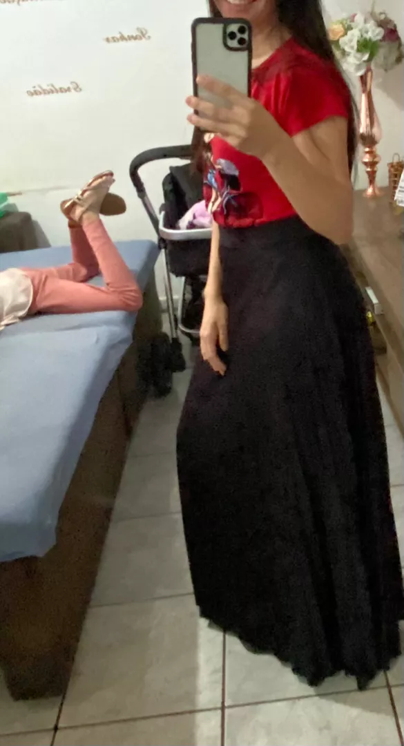 Confeccionada em helanca super leve com elastano forrada possui modelagem com elástico na cintura Saia Longa Plissada é uma peça super versátil pode ser combinado com vários estilos