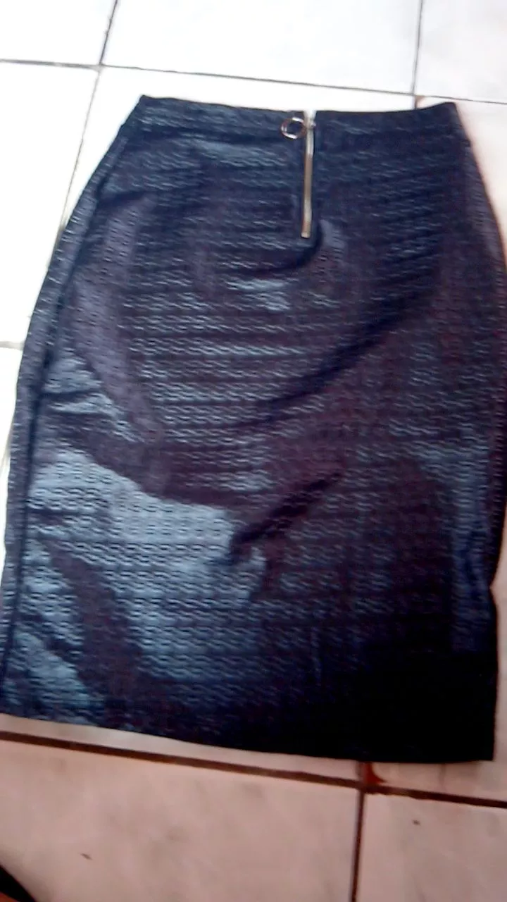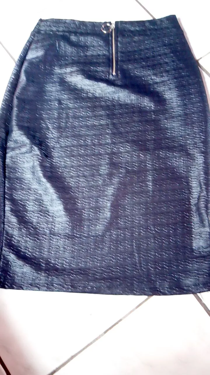 Saia secretaria branca midi, reta com zíper - Raryel - Preta (ziper lateral)