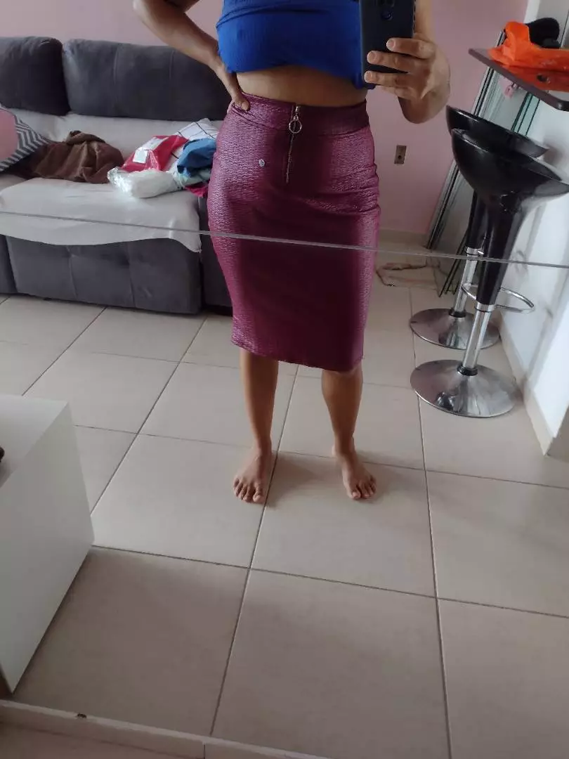 Saia secretaria branca midi, reta com zíper - Raryel - Vinho (ziper lateral)
