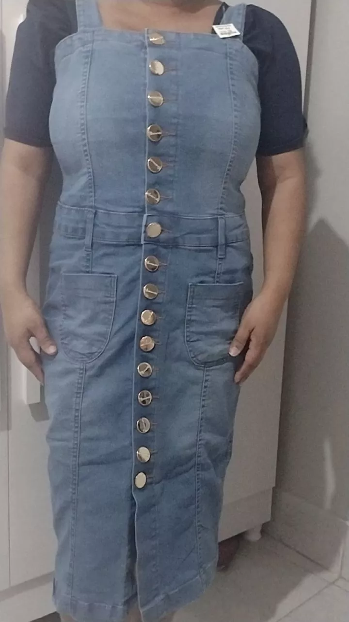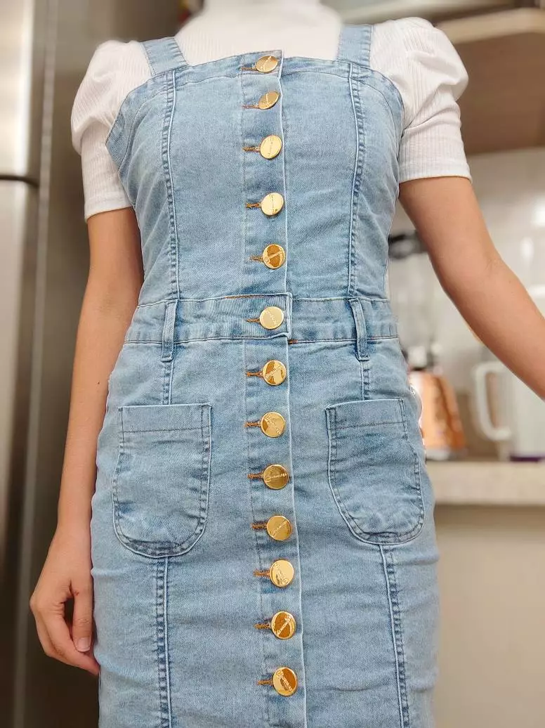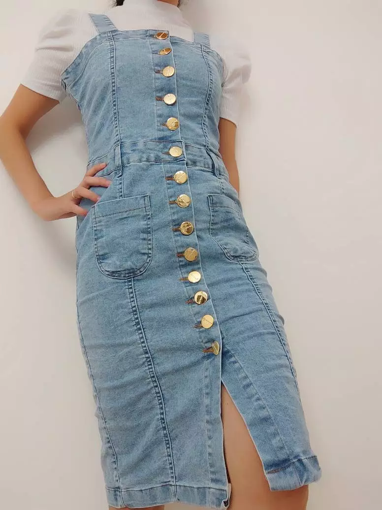 Vestido SalopeteJardineira no tecido Jeans
