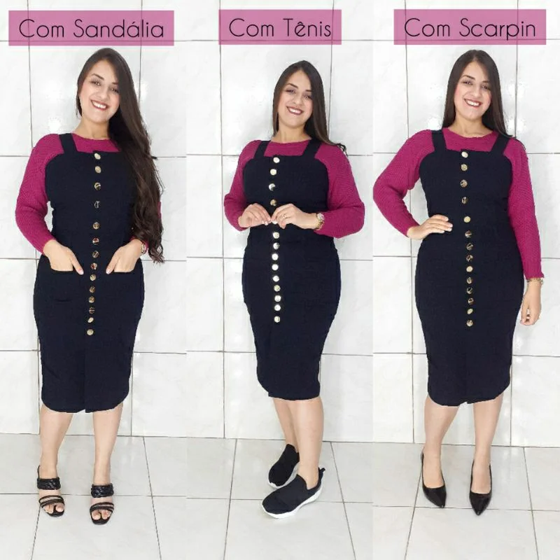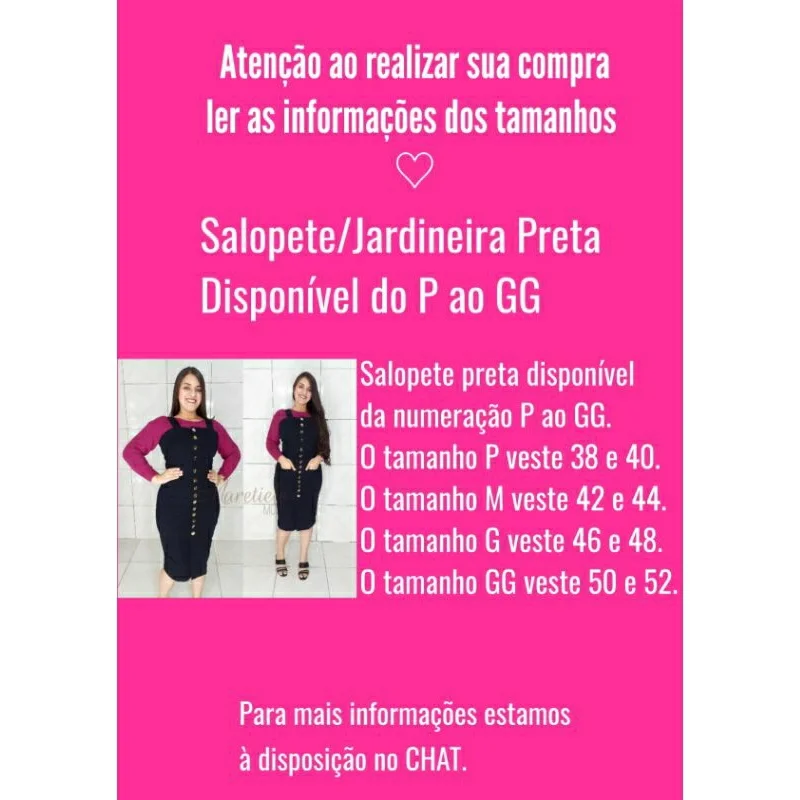 Salopete no tecido BrincomLaycra tipo bengaline na cor preta disponível do tamanho P ao GG