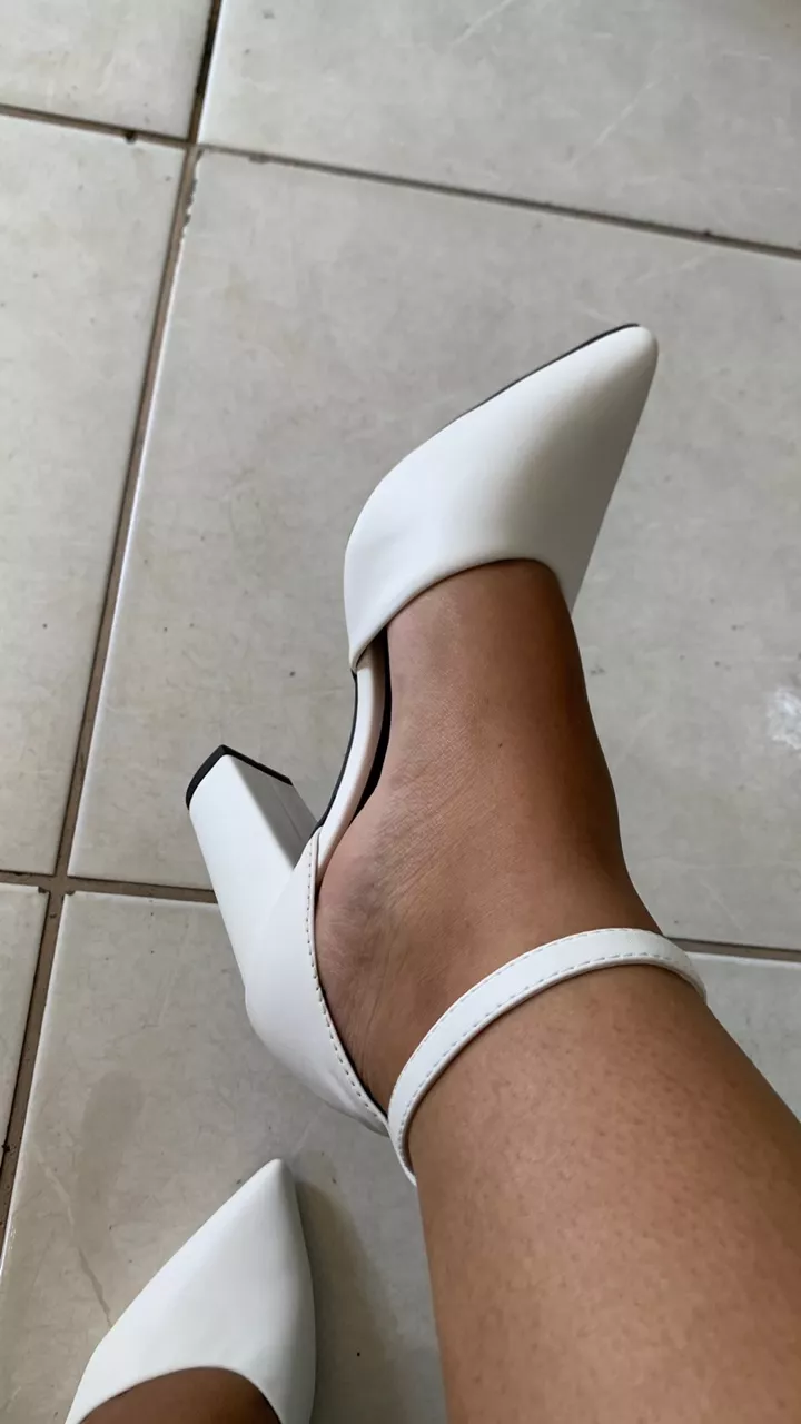 Compre o Scarpin bloco branco *2022* com salto de 9cm grosso na Raryel. Aproveite nossos preços baixos e descontos especiais. Perfeito para looks elegantes e confortáveis.