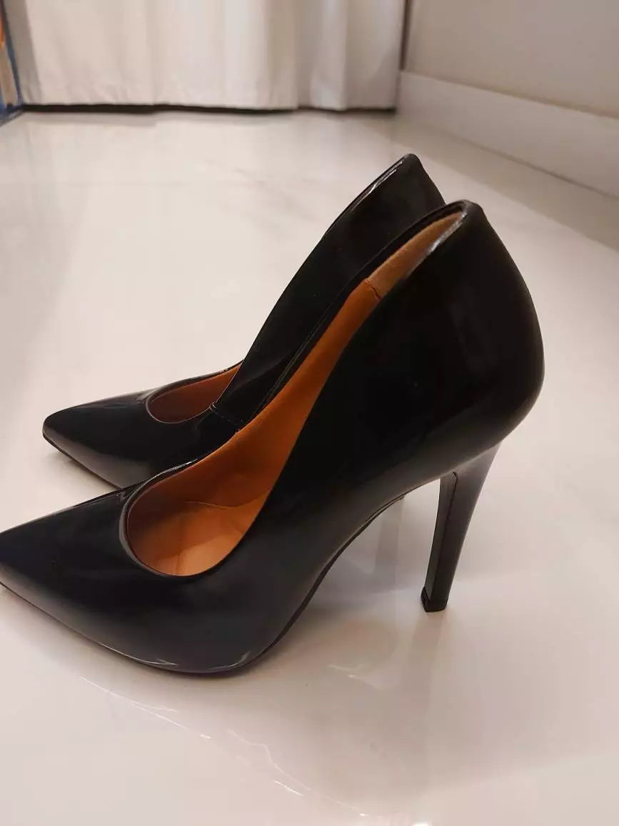 Calçado fabricado em material sintético Verniz Preto com forro em espuma 3 mm que aumenta o conforto durante o uso Salto de 11cm pintado na cor do calçado