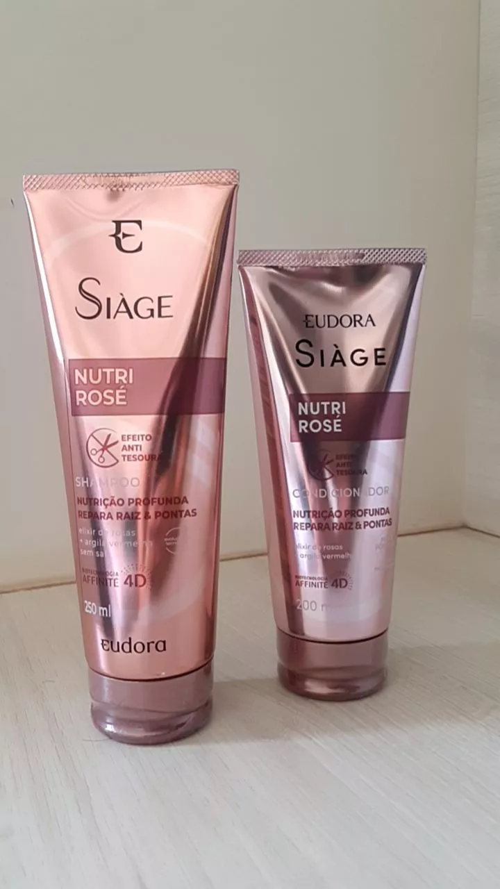 A linha Siàge Nutri Rosé é enriquecida com um poderoso Elixir de Rosas rico em vitaminas e antioxidantes que nutrem os fios e tem auto poder de reparação combinado a natural Argila Vermelha que nutre os fios promovendo equilíbrio ao couro cabeludo e reparação profunda da raiz as pontas
