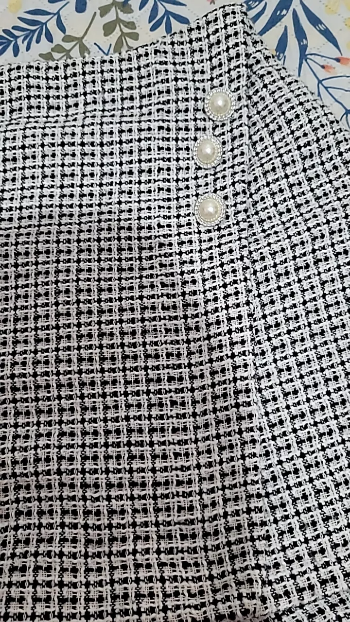 Short Elegante Xadrez Lovito 2 Em 1 Feminino Tweed LBE02031 (Preto E Branco) - Preto e Branco