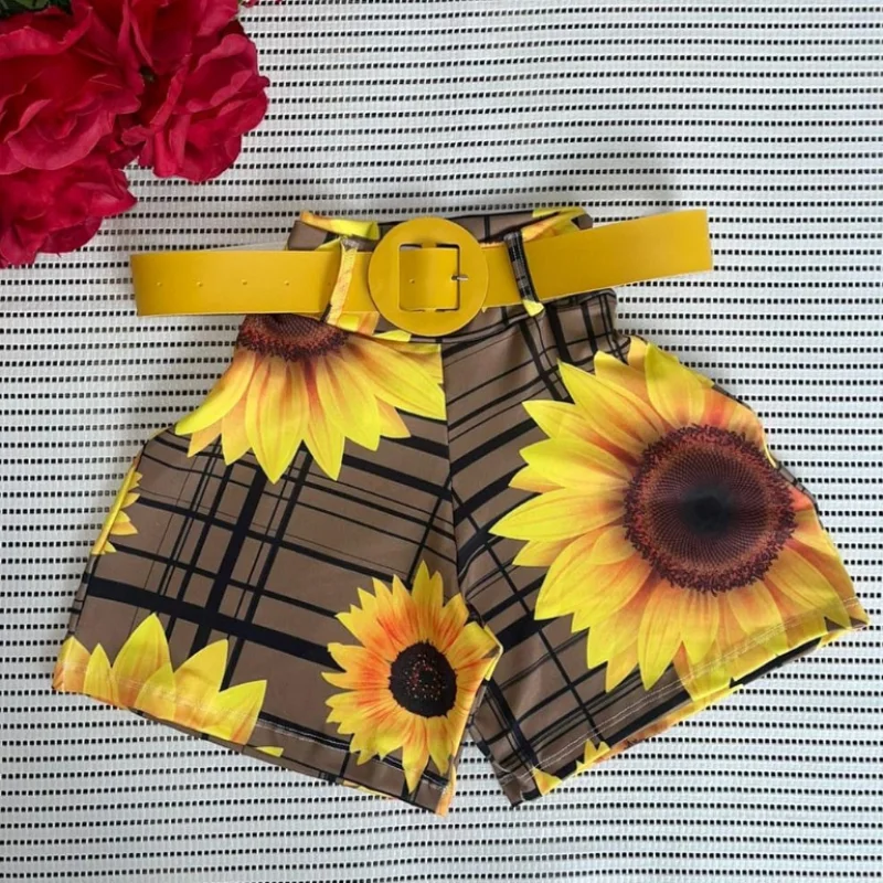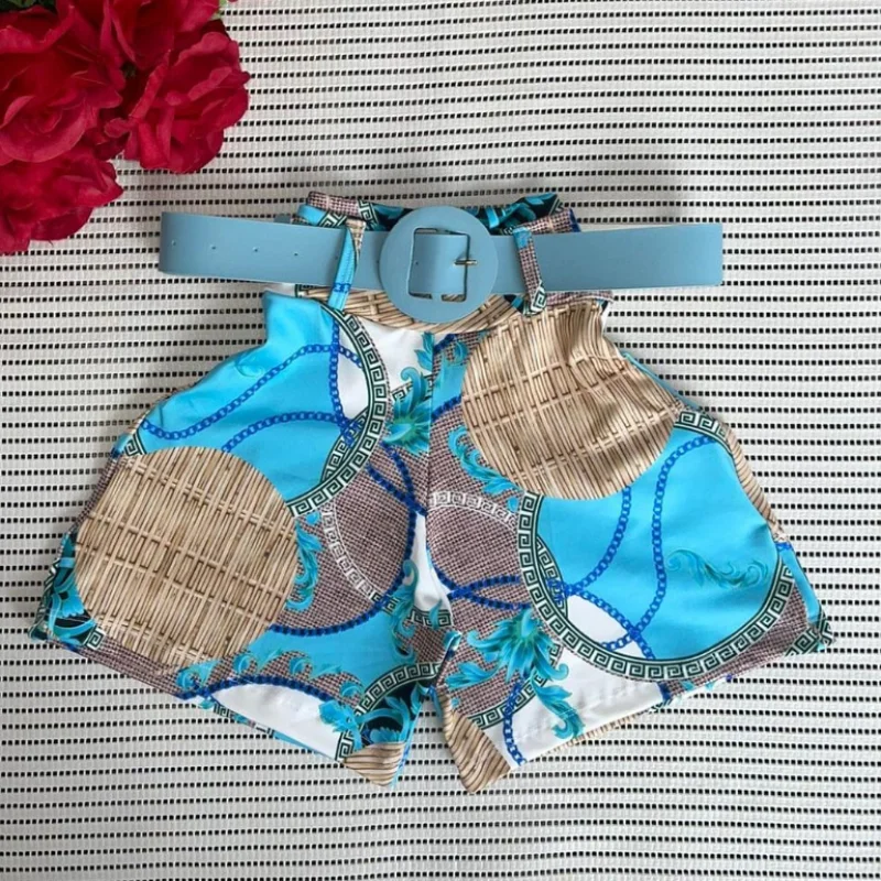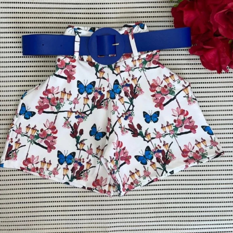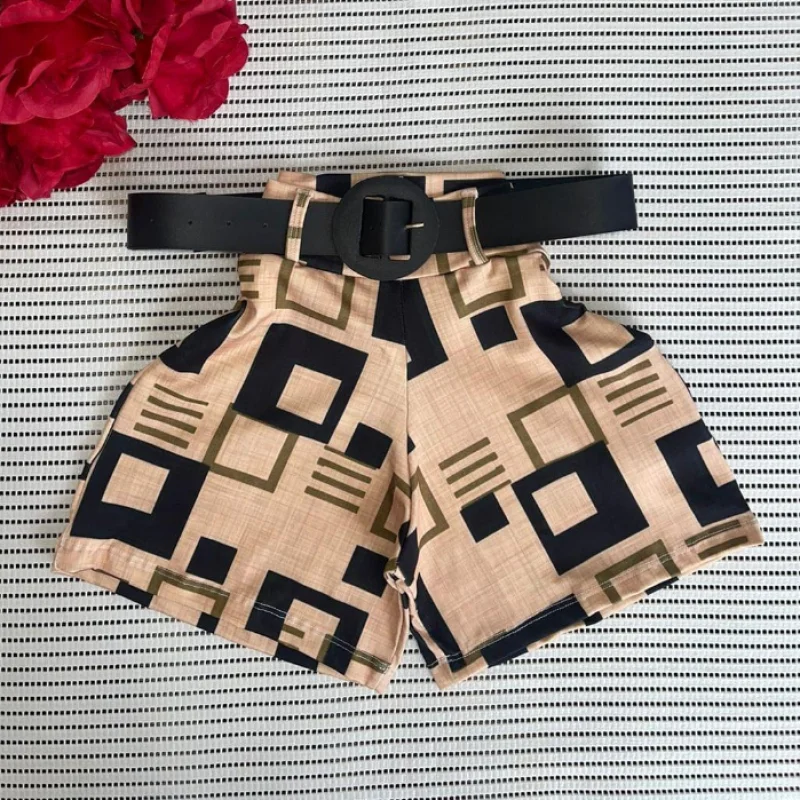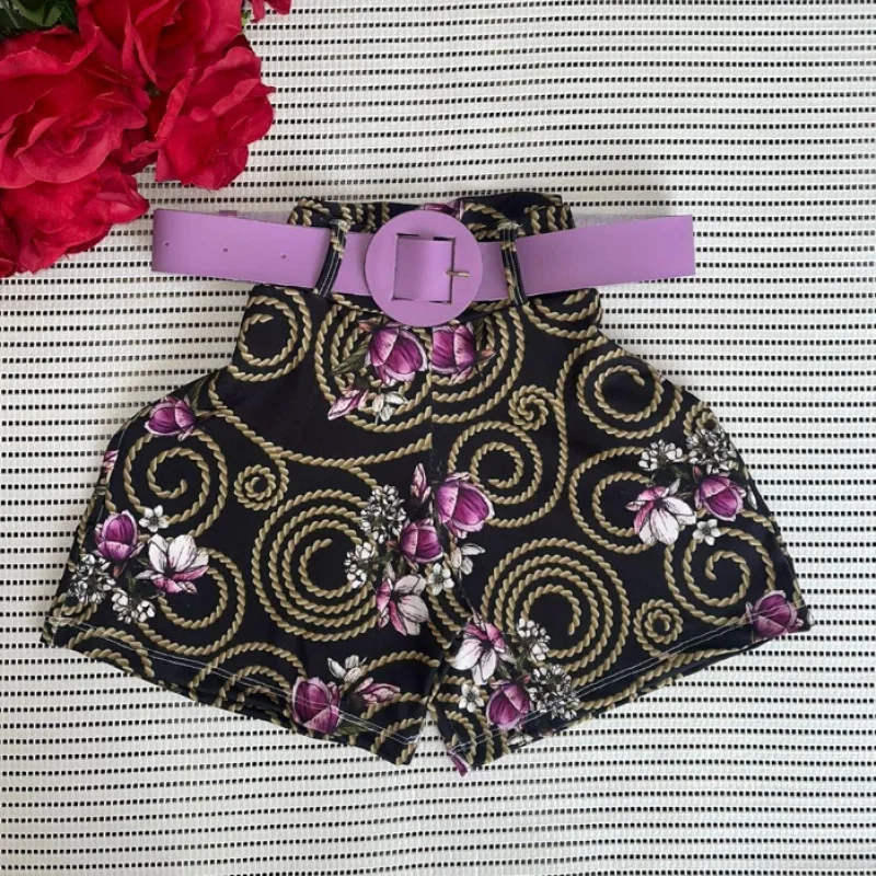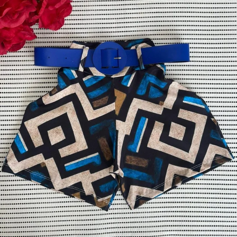 Short Feminino Malha Cintura Alta + Cinto. Moda Praia Verão - MODELO 2 ESTAMPA SORTIDA