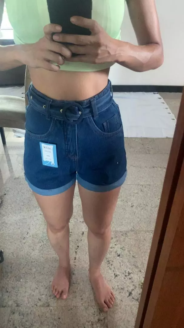 Compre o novo Shorts Jeans Mom com fivela redonda e acompanha cinto na loja online Raryel. Aproveite nossos preços baixos, promoções e descontos exclusivos. Adquira já o seu!