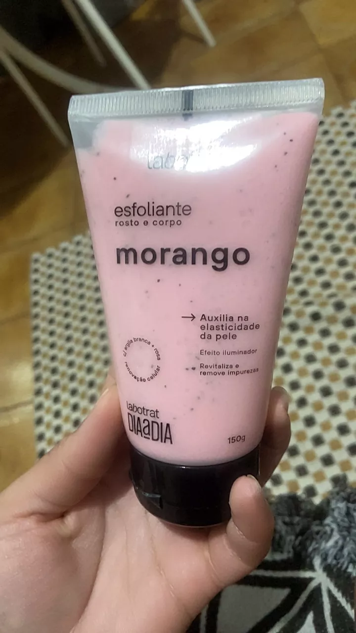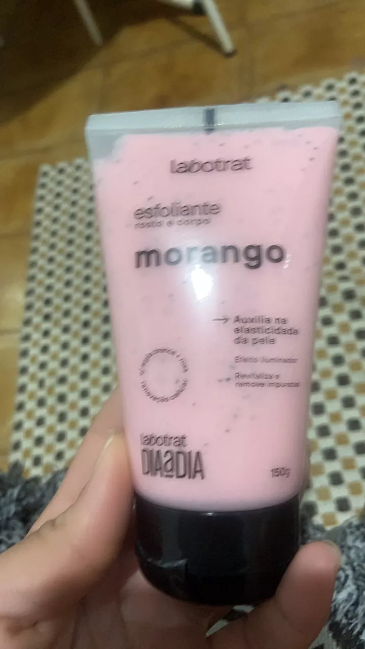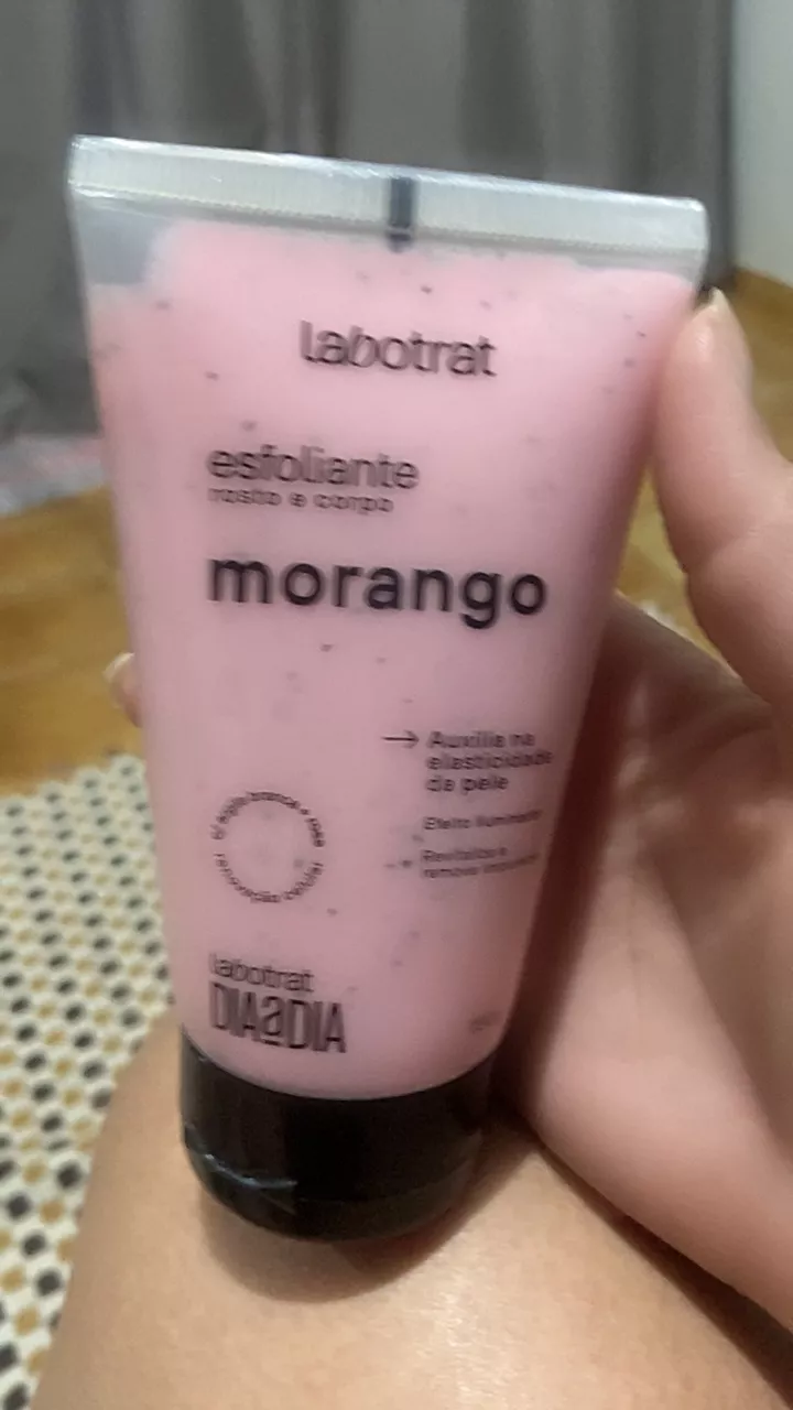 O Esfoliante de Morango Labotrat é rico em antioxidantes e atua no clareamento da pele reduzindo olheiras e manchas