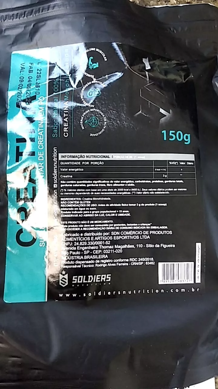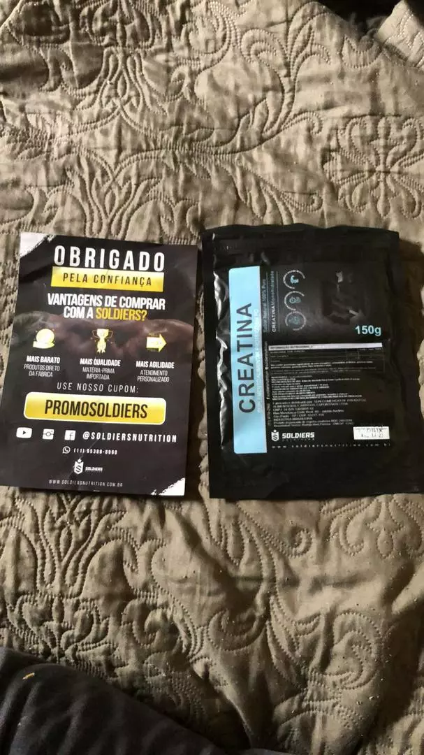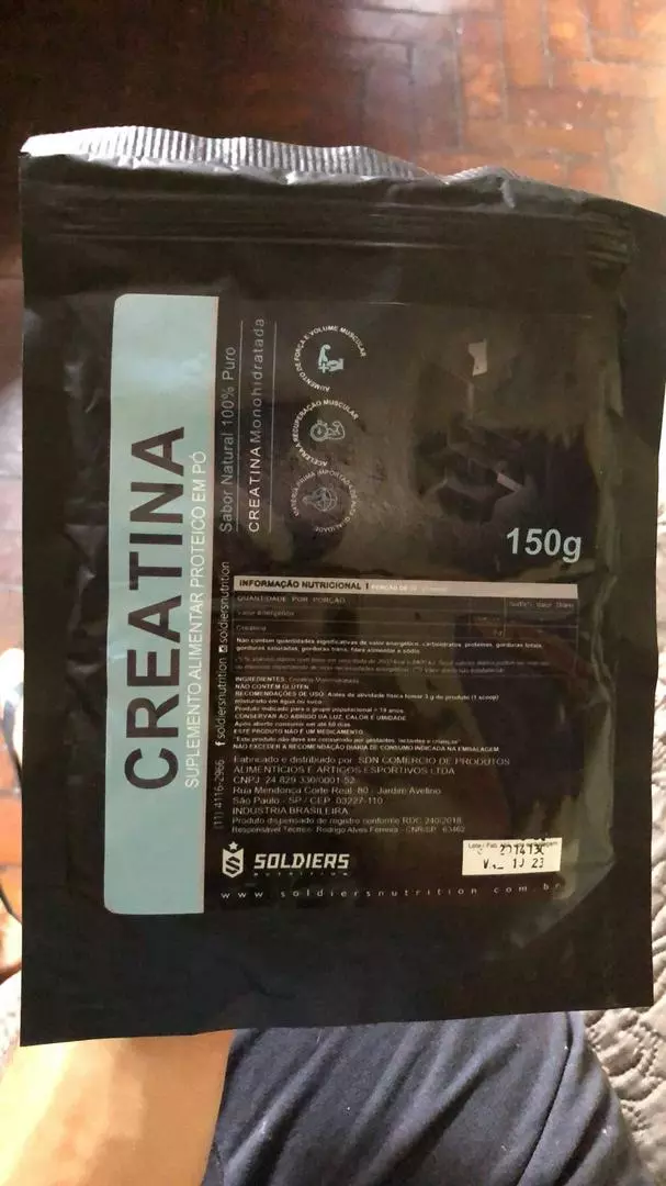 Compre a Creatina Monohidratada Importada 100% Pura de 150g da Soldiers Nutrition na loja online Raryel. Aumente sua força e resistência com qualidade e preço baixo.