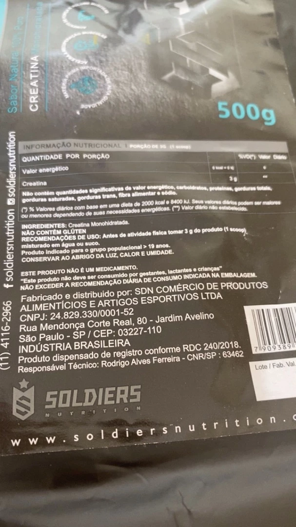 Compre a Creatina Monohidratada Importada da Soldiers Nutrition na loja online Raryel. Produto de alta qualidade, 100% puro e com garantia de resultados. Aumente sua força e potência nos treinos com essa fórmula poderosa.
