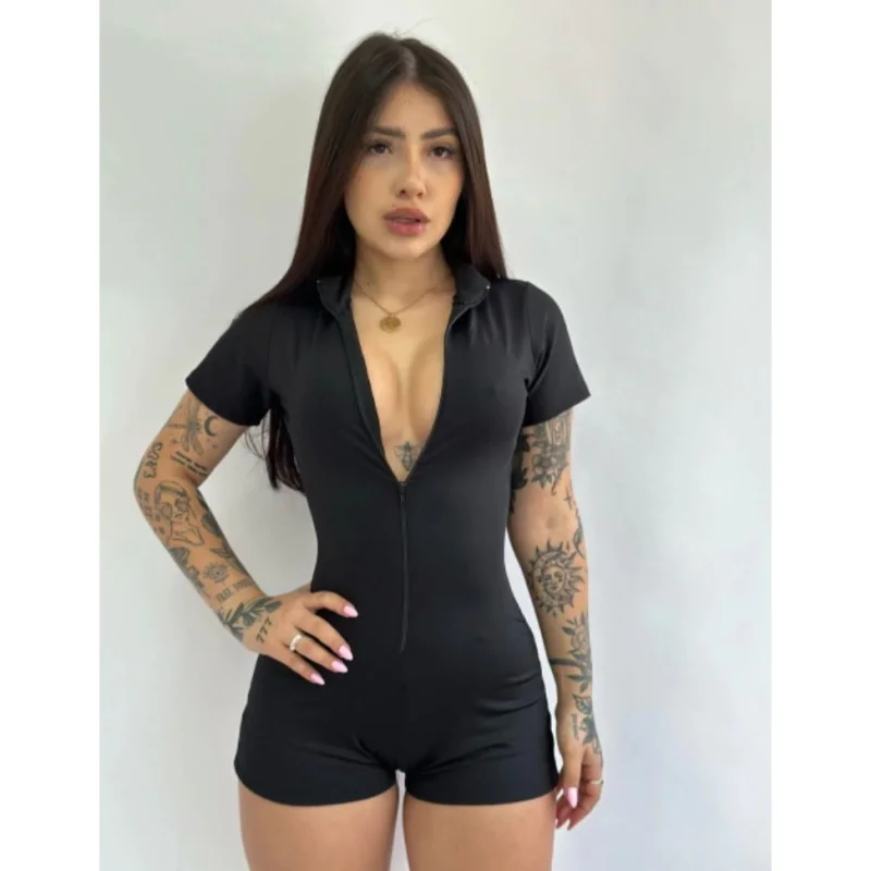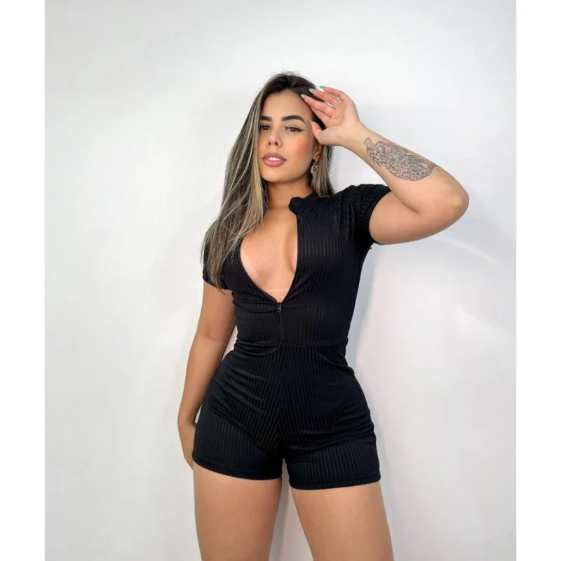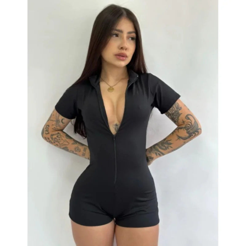 O macaquinho feminino academia manga curta short curto é perfeito para os treinos na academia. Feito em suplex preto, proporciona conforto e liberdade de movimento. Compre agora na loja online de roupas Raryel e aproveite nossos preços baixos e promoções!
