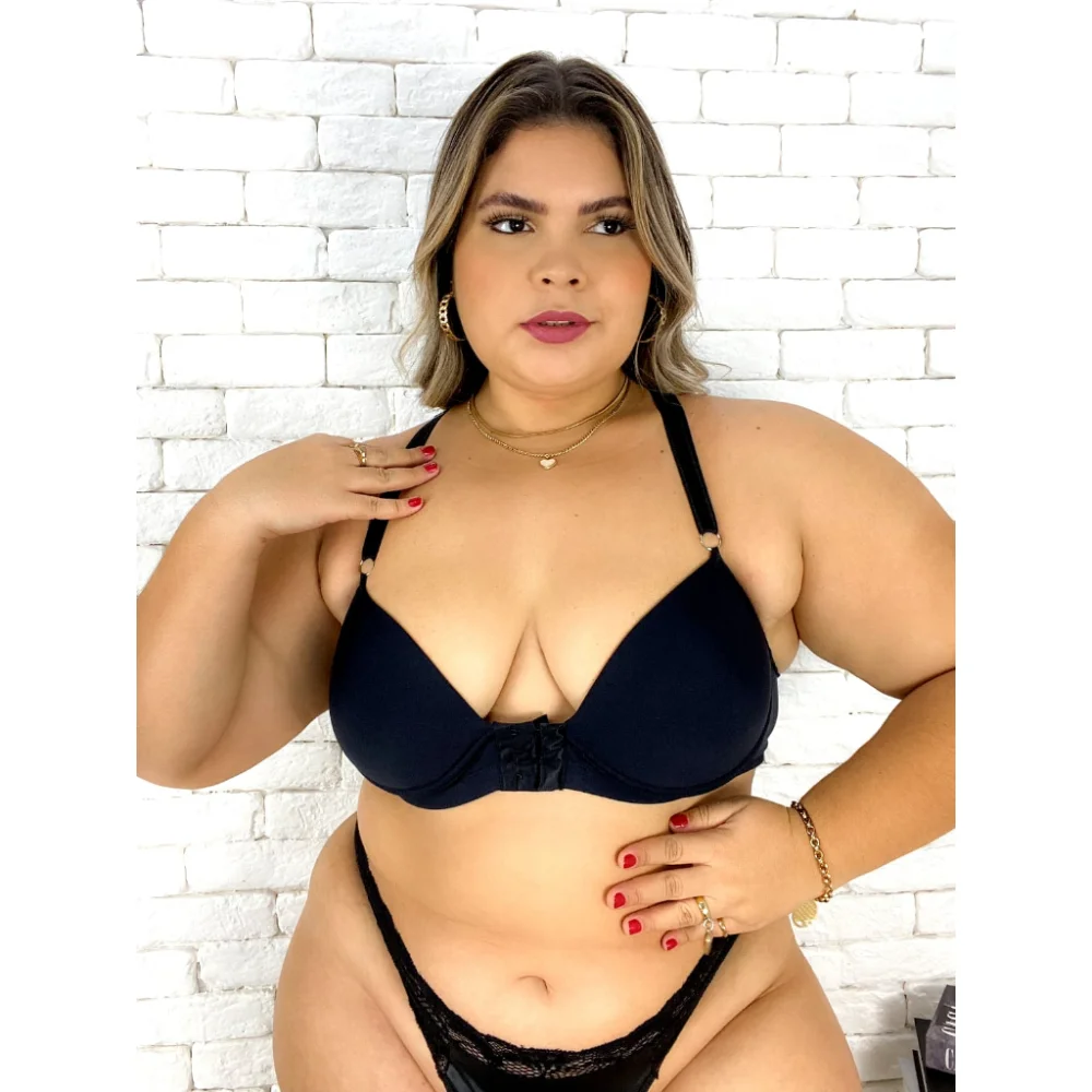 Sustentação Grande: Sutiã Plus Size Reforçado Nadador Fecho Frontal - Preto