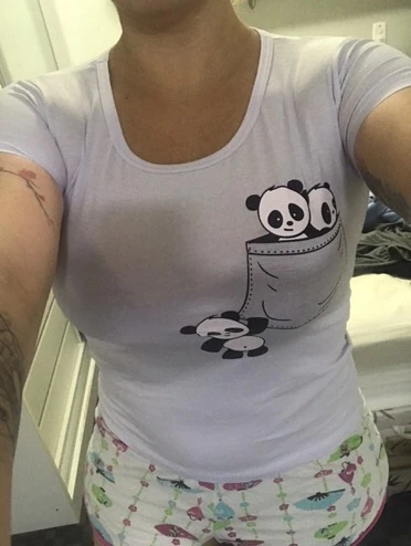 Compre a T-shirt Feminina Bolso Panda na loja online de roupas Raryel. Aproveite nossos preços baixos, promoções e descontos!