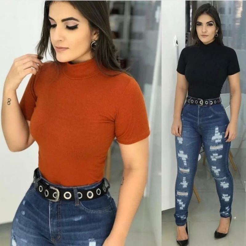 Blusa Gola Alta liso na malha canelada com elastano malha com ótimo caimento no corpo não amassa não encolhe