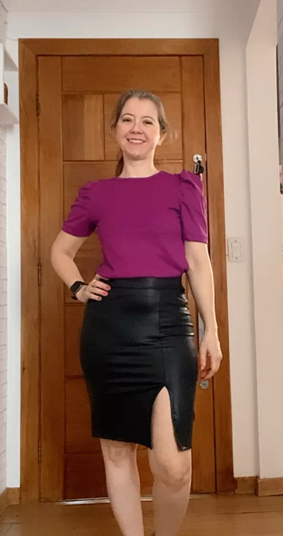 Compre a saia midi fenda/racho em tecido cirrê de alta qualidade na loja online Raryel. Tamanho único, cintura alta e com um design moderno. Aproveite nossos preços baixos e promoções!