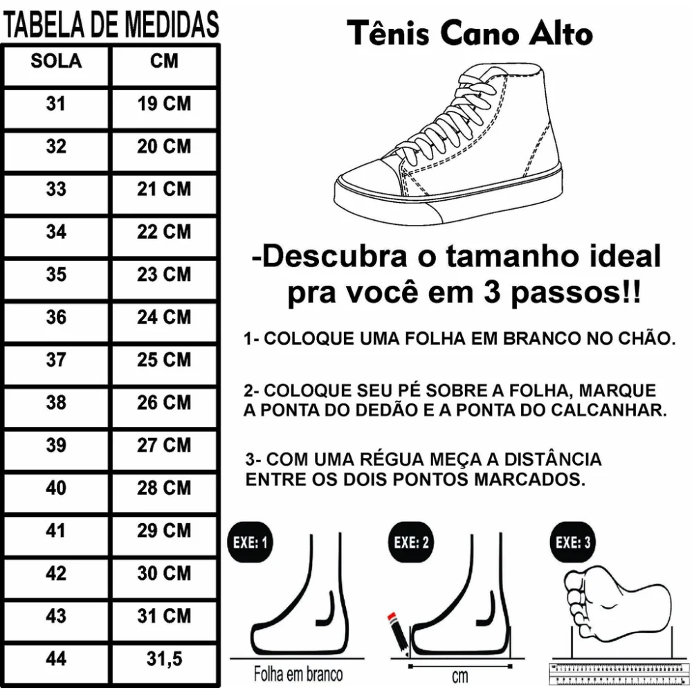 Produzido com materiais de alta qualidade além de um estilo urbano exclusivo é produzido em lona de alta resistência com fechamento e ajuste em cadarço seu solado desenvolvido em TR é leve flexível e garante aderência em diferentes pisos oferecendo a segurança e o conforto para o uso diário Trazemos estampas exclusivas e também dos principais animes e desenhos O mundo dos games assim como os Mangas histórias em quadrinhos alimentam nossa imaginação e nos sentimos parte das histórias e dos games que jogamos oferecemos uma linha exclusiva de tênis com a identidade de cada um dos temas que entregamos em cada produto Informações Técnicas de Tênis cano Alto Cabedal Lona de alta Resistencia Estilo Urbano Material Interior Poliéster Design Leve Ajuste Cadarços Tamanho do Fabricante Numérico Material da Sola Thermoplastic Rubber TR Anime Personagens Naruto Akatsuki Attack On Titan Caveira Cobra Kai Exo FD Grau Floral Halloween Grafitti Games LGBT entre outros