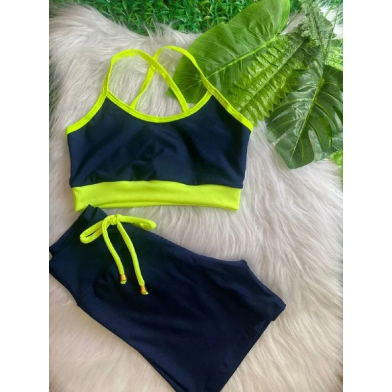 Top Alcinha fitness feminino e Conjunto de Academia Short com cordinha - VERDE COM BRANCO
