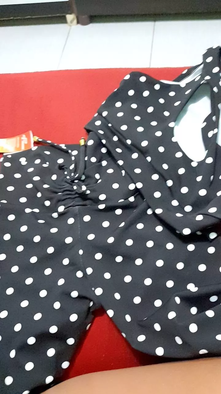 Top com bojo + Conjunto calça legging com cordinha - Preto poa pequeno alcinha