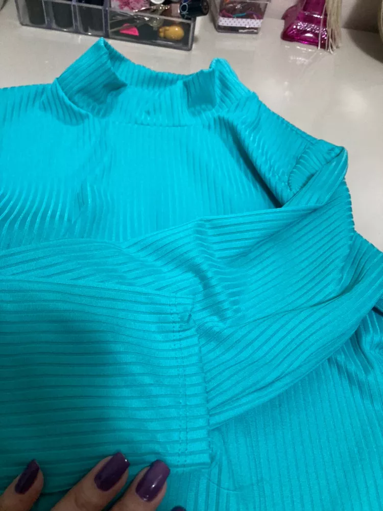 Cropped manga longa tecido canelado