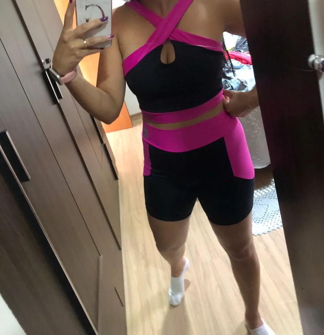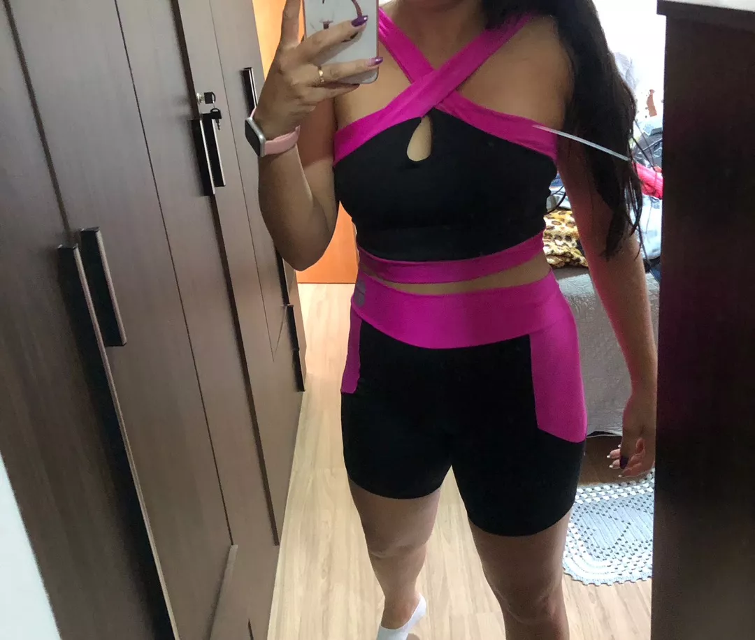 O conjunto fitness feminino Top Cruzado + Short Cós Alto é perfeito para você arrasar nos treinos! O top possui um design moderno com cruzamento nas costas, proporcionando maior sustentação e conforto durante os exercícios. O short tem cós alto que modela a cintura e valoriza o corpo. Além disso, ambos são confeccionados em tecido de alta qualidade que oferece ótima respirabilidade e secagem rápida. Garanta já o seu conjunto fitness feminino na loja online de roupas Raryel e tenha um look incrível para suas atividades físicas!