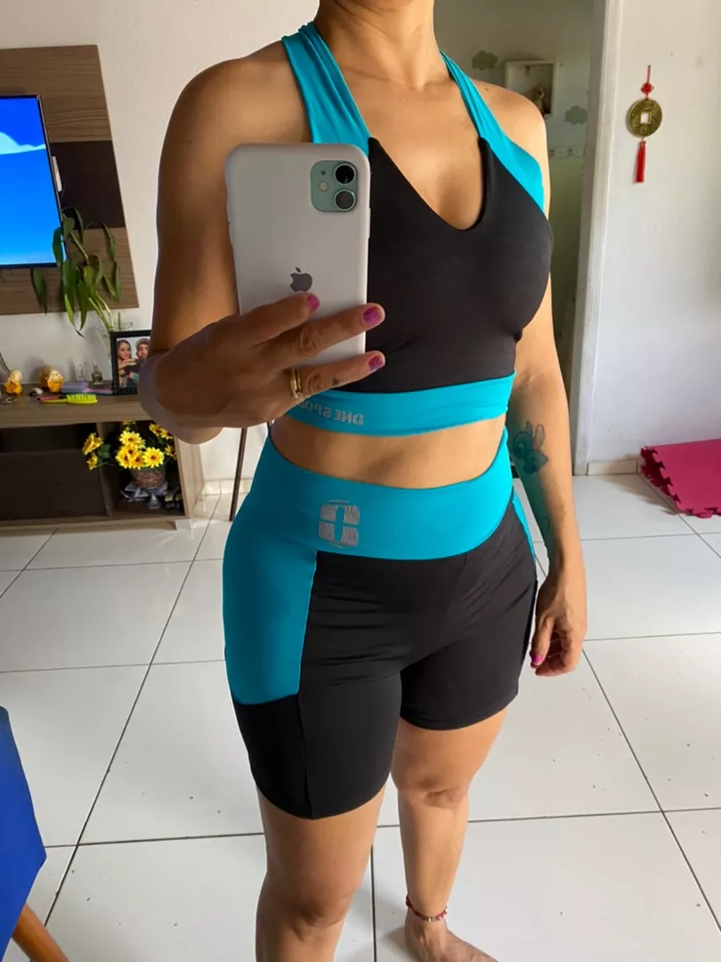 O kit é composto por 1 Calça Legging 1 Top Fitness
