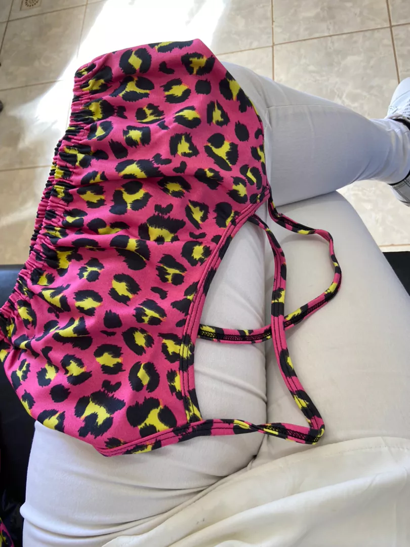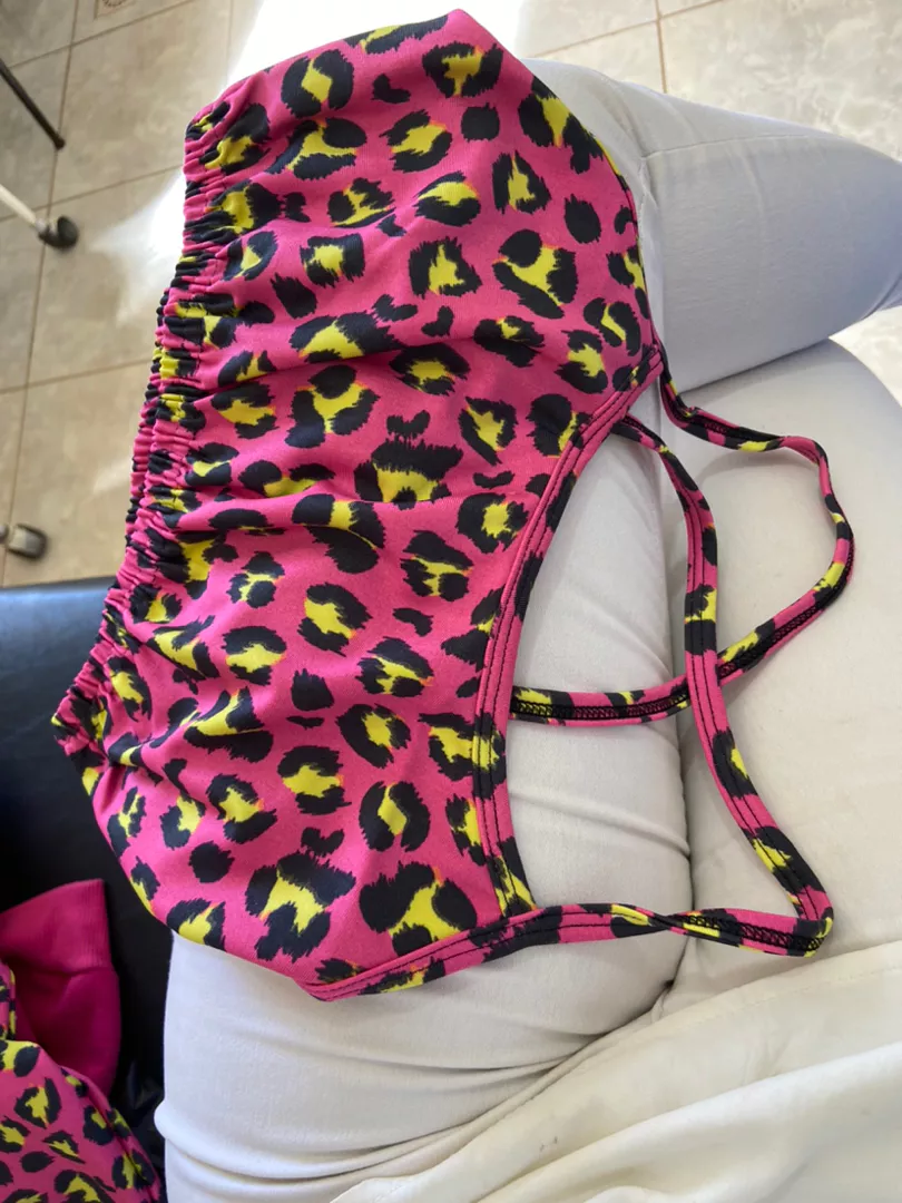Top de alcinha cruzada sem bojo com Conjunto Fitness short - riscos azul/pink