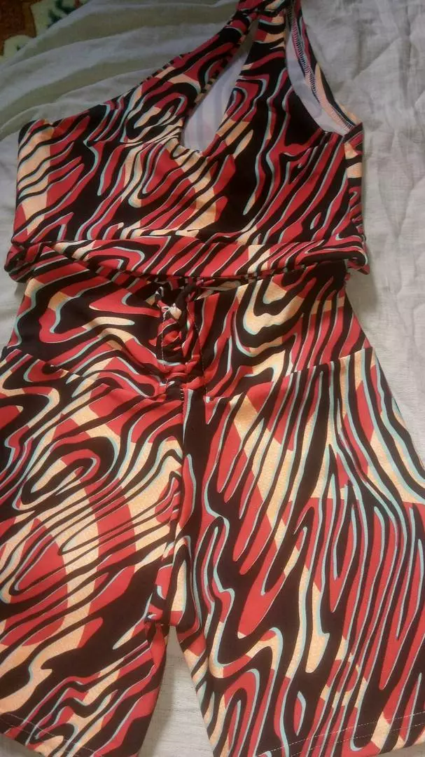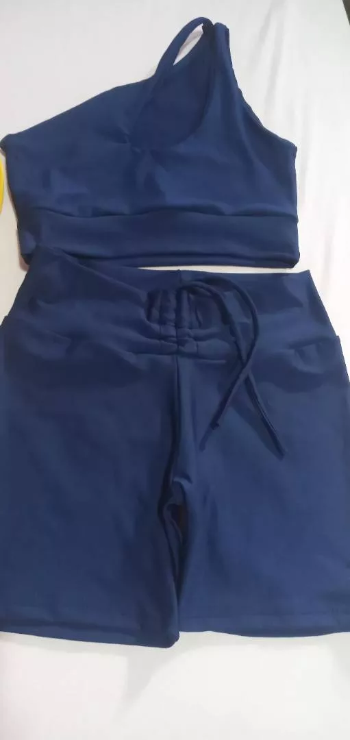 Conjunto com short com cordão para amarrração frontal Top de Um Ombro