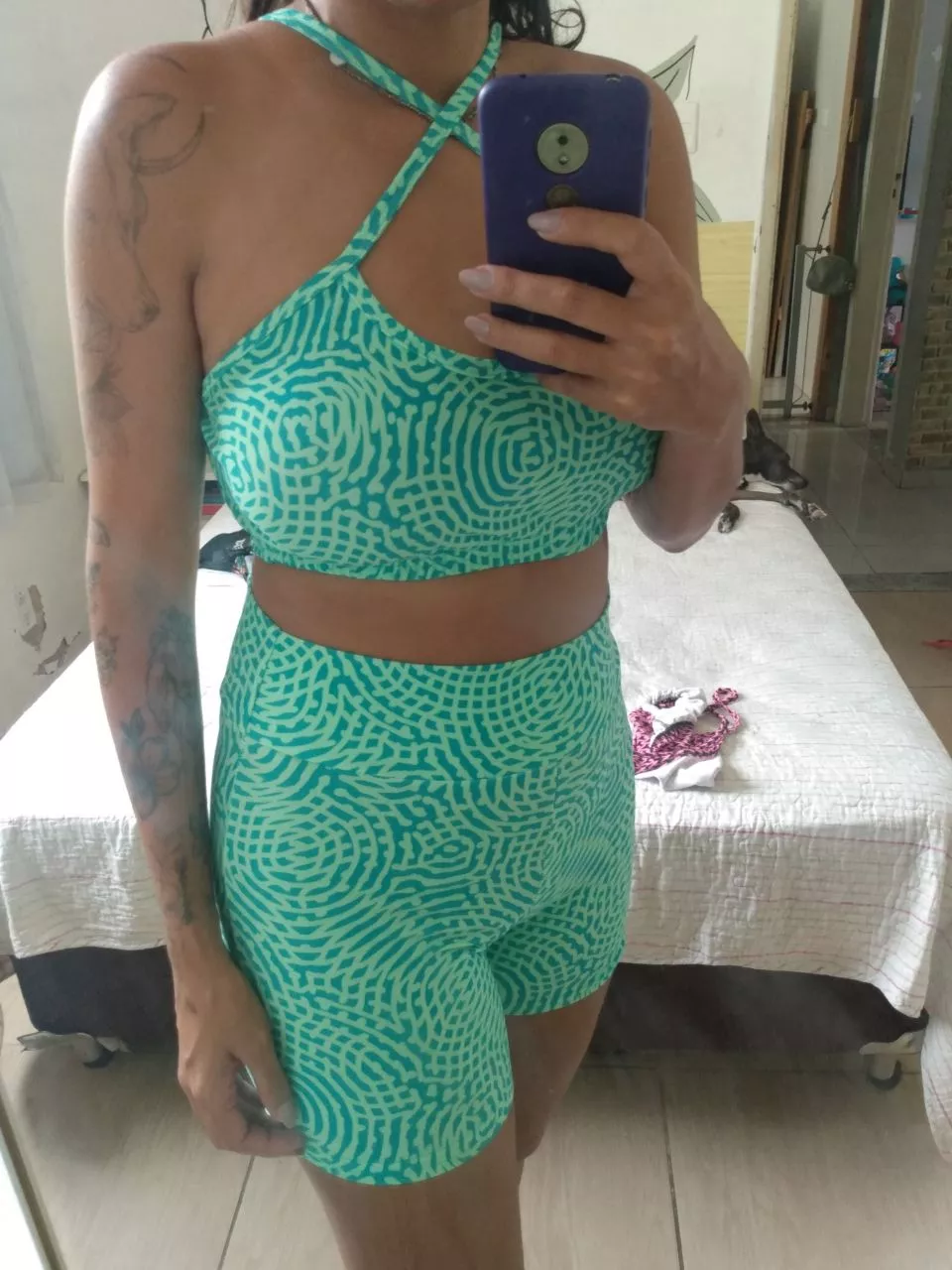 O Conjunto Academia Feminino Roupas Fitness Estampado Top e Short é ideal para suas atividades físicas. Feito com tecido de alta qualidade, proporciona conforto durante os exercícios. O top oferece suporte adequado ao busto, enquanto o short permite liberdade de movimento. Além disso, você pode escolher a cor que mais combina com seu estilo. Compre agora na loja online de roupas Raryel e aproveite nossos preços baixos, promoções e descontos exclusivos!