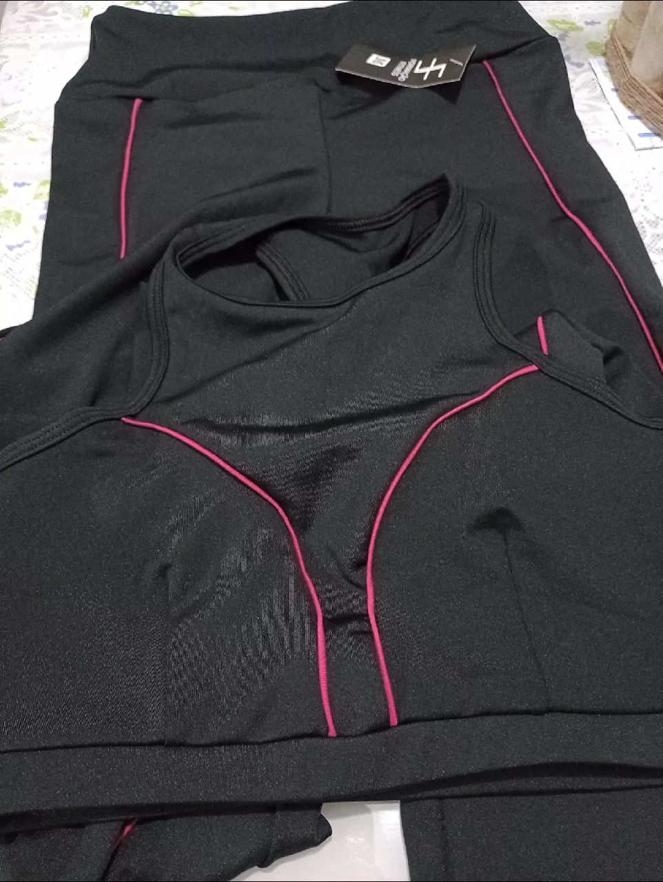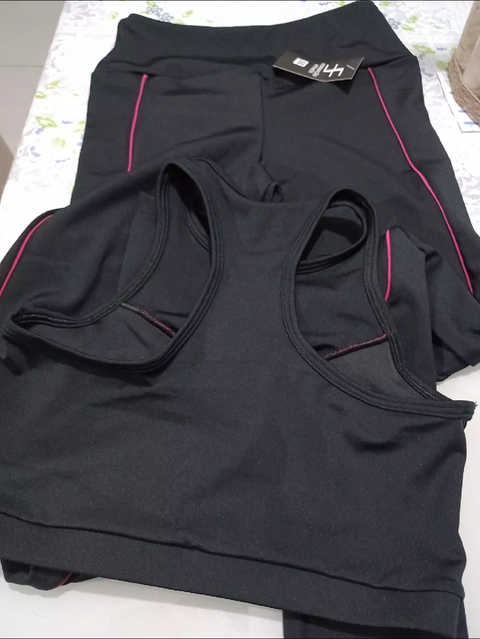 Top Fitness Academia e Conjunto Calça Legging SEM TRANSPARÊNCIA - Preto com Pink