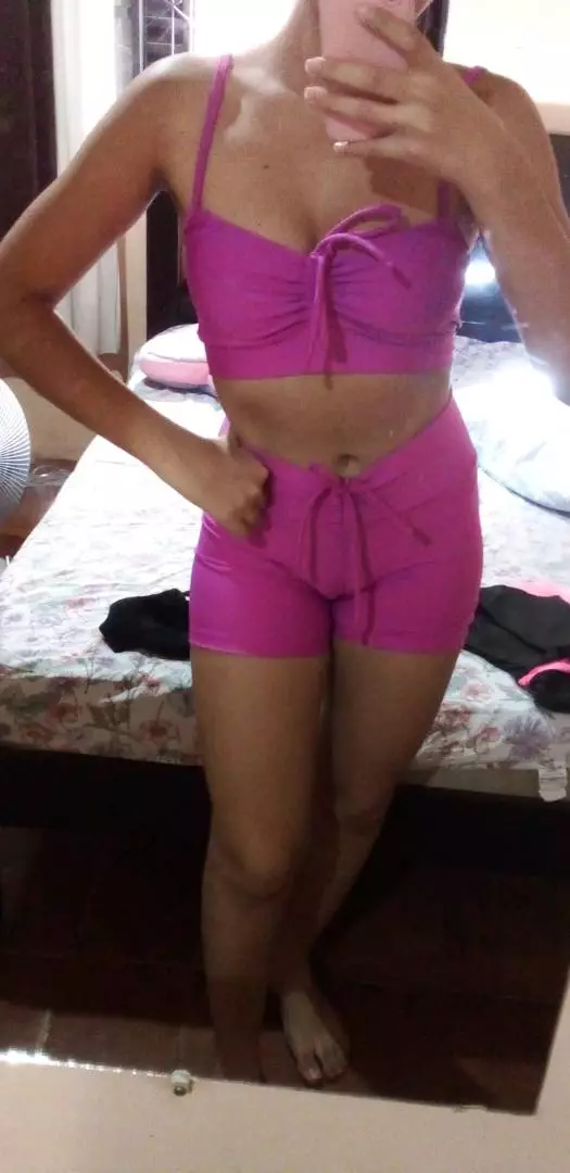 Conjunto Short empina bumbum com regulagem no cós Top com canal e regulagem e alças com regulagens