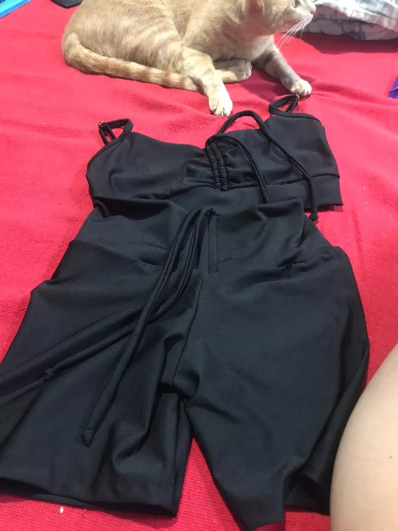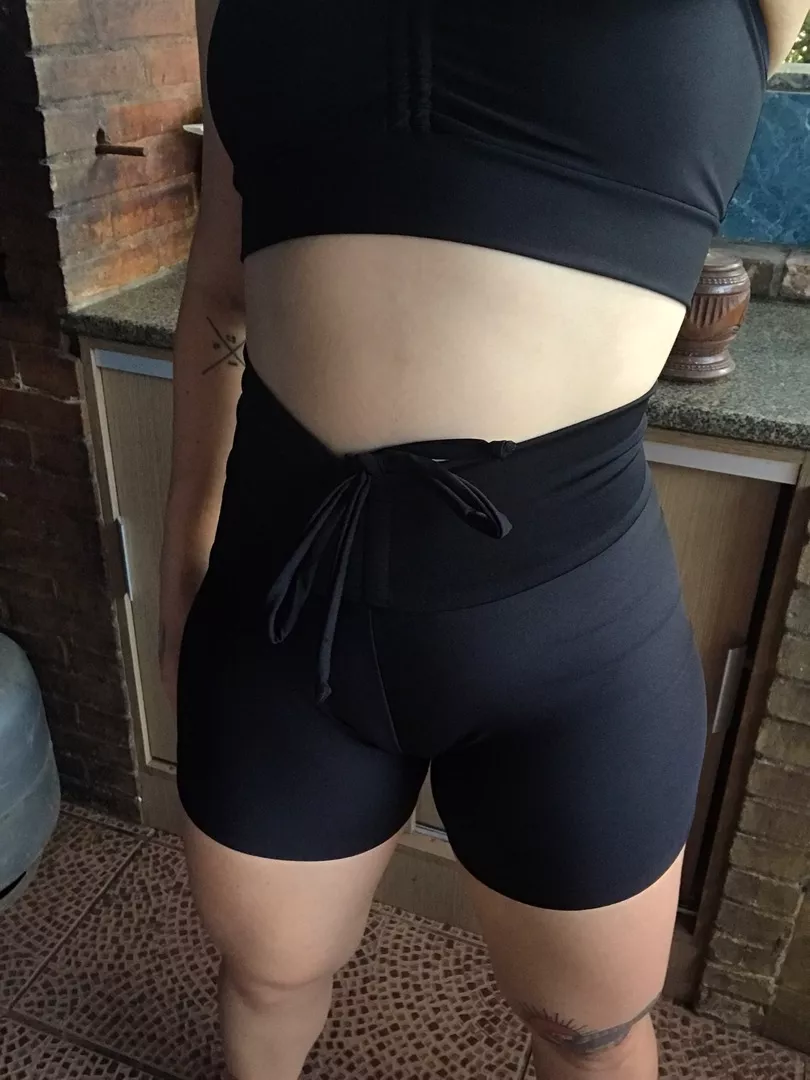 Conjunto Short empina bumbum com regulagem no cós Top com canal e regulagem e alças com regulagens