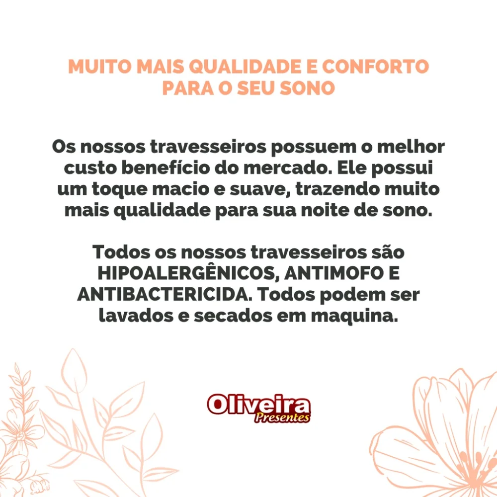 - Recursos do Travesseiro: Antialérgico, Antibactericida, Antiácaro, Apoio de Pescoço