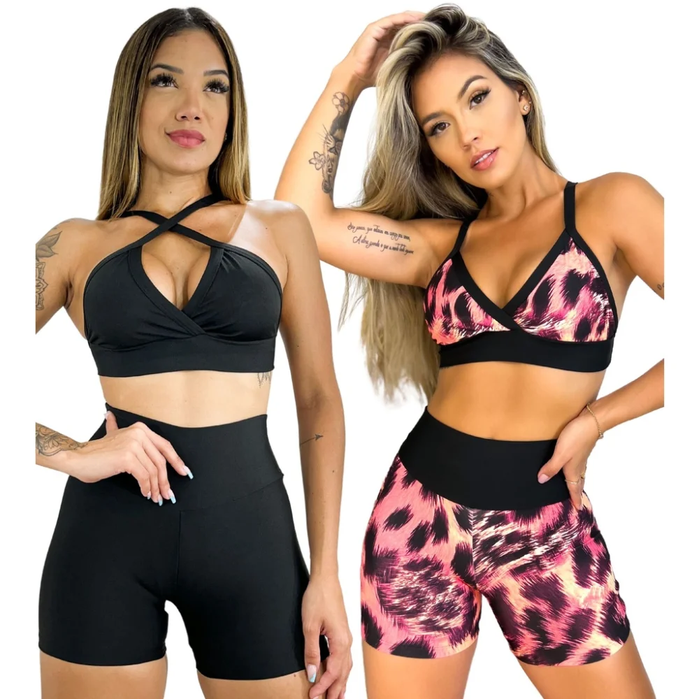 Compre o Kit com 2 Conjuntos Fitness Top e Short para treinar na academia. Aproveite os preços baixos, promoções e descontos comprando na loja online de roupas Raryel.