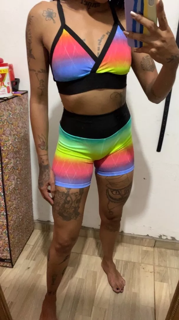 Compre o Kit com 2 Conjuntos Fitness Top e Short para treinar na academia. Aproveite os preços baixos, promoções e descontos comprando na loja online de roupas Raryel.