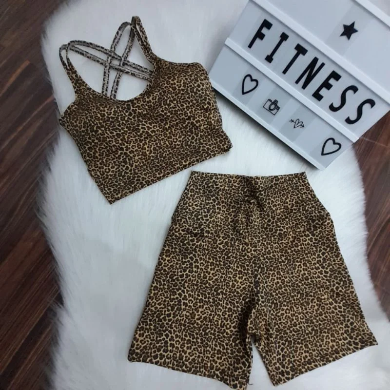 Treino Fitness Conjunto Top e Short Roupa de Academia Exercício - Exército