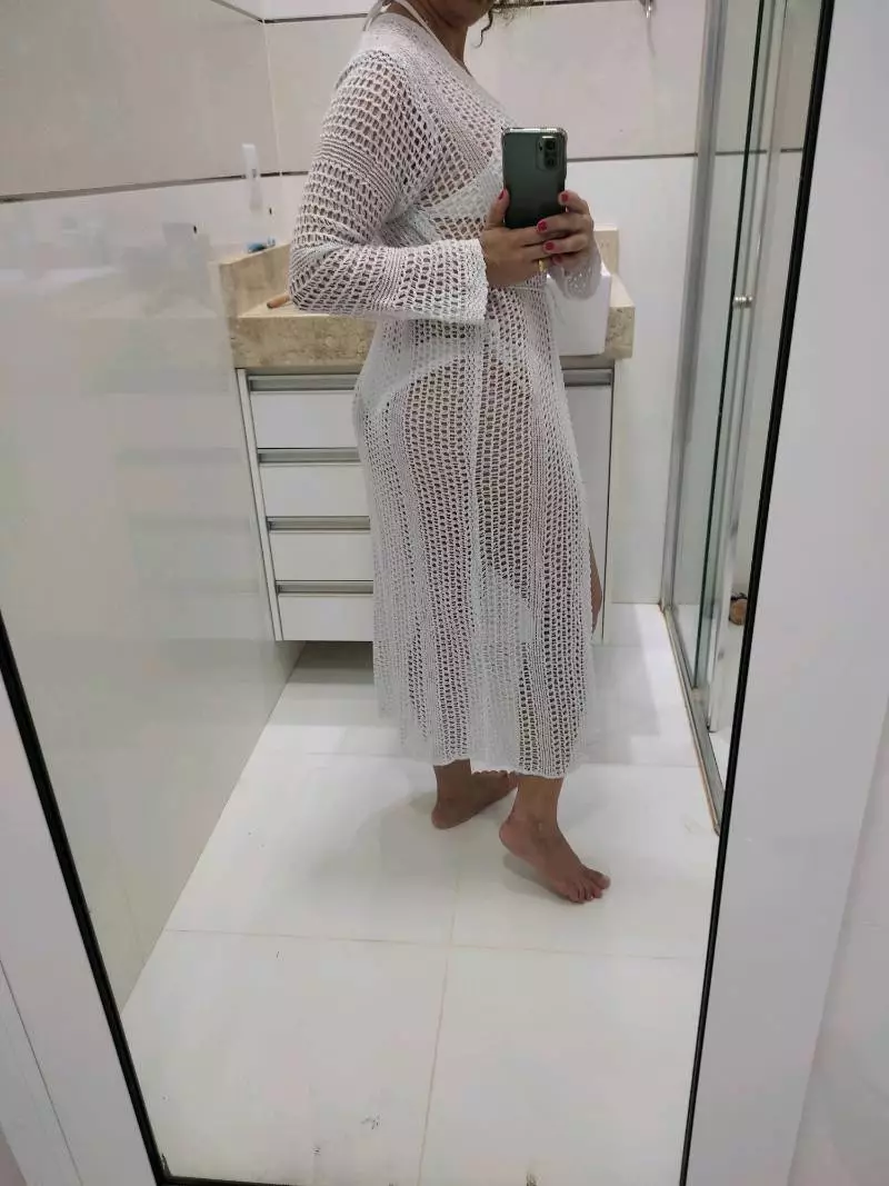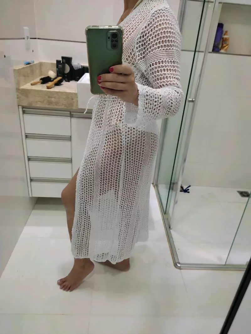 Compre a Saida de Praia Longa de Manga Tricot na Raryel. Aproveite nossos preços baixos, promoções e descontos exclusivos. Perfeita para arrasar no verão!