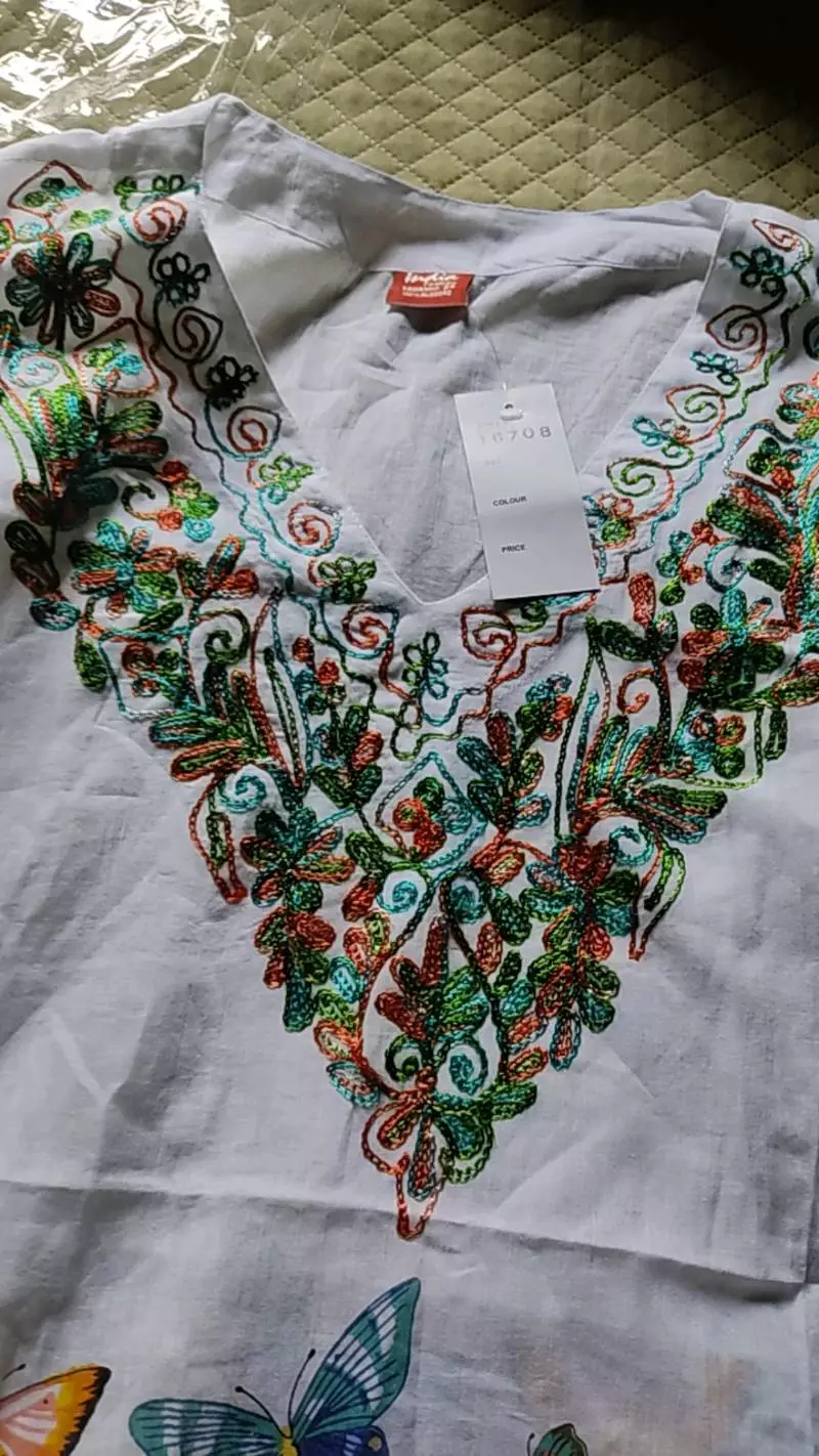 Bata Indiana Feminina em Algodao Indiano com Detalhes Bordados e Estampas com Manga 34