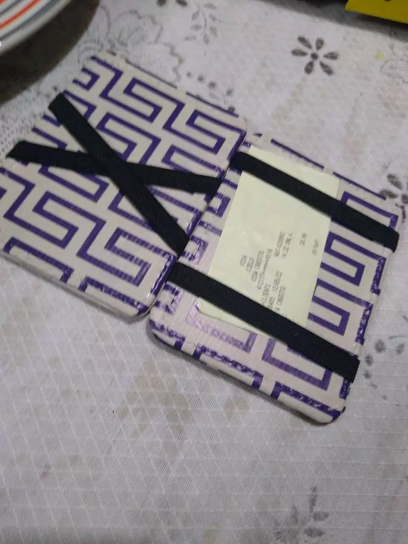 carteira magicaSilk e elásticocouro sintético suporta 4 cartões notas e documentosabertura flexívelexcelente material