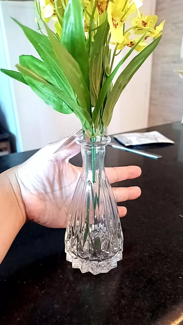 Características VASO DE VIDRO COM ARRANJO DE FLORES ARTIFICIAIS