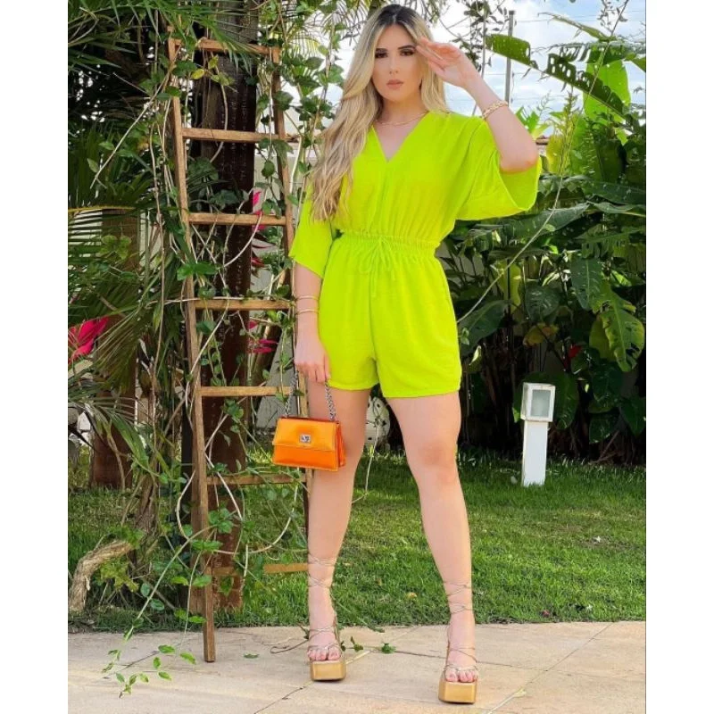 Verão Macacão Feminino Blogueira Soltinho Macaquinho - Laranja
