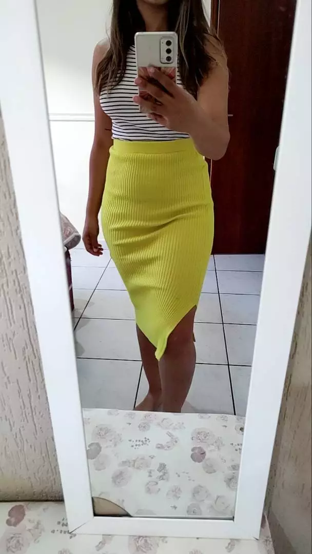 Tendência da Moda Esta saia midi tricot está alinhada com as últimas tendências da moda perfeita para você que acompanha o estilo das blogueiras
