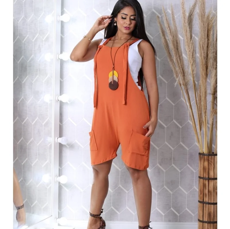 Compre a jardineira de malha com ilhós e bolso na loja online da Raryel. A peça é versátil, confortável e se ajusta perfeitamente aos tamanhos do 38 ao 46. Aproveite nossos preços baixos e promoções!