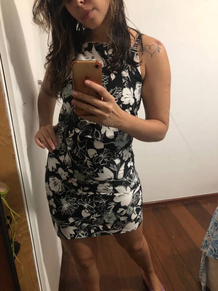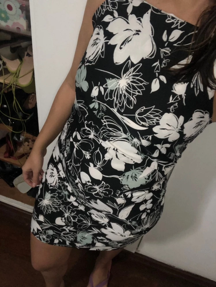 Vestidinhos Tubinho Estampados Femininos com Elastano - Inspiração Farm Moda Verão - PRETO ESTAMPA SORTIDA 1