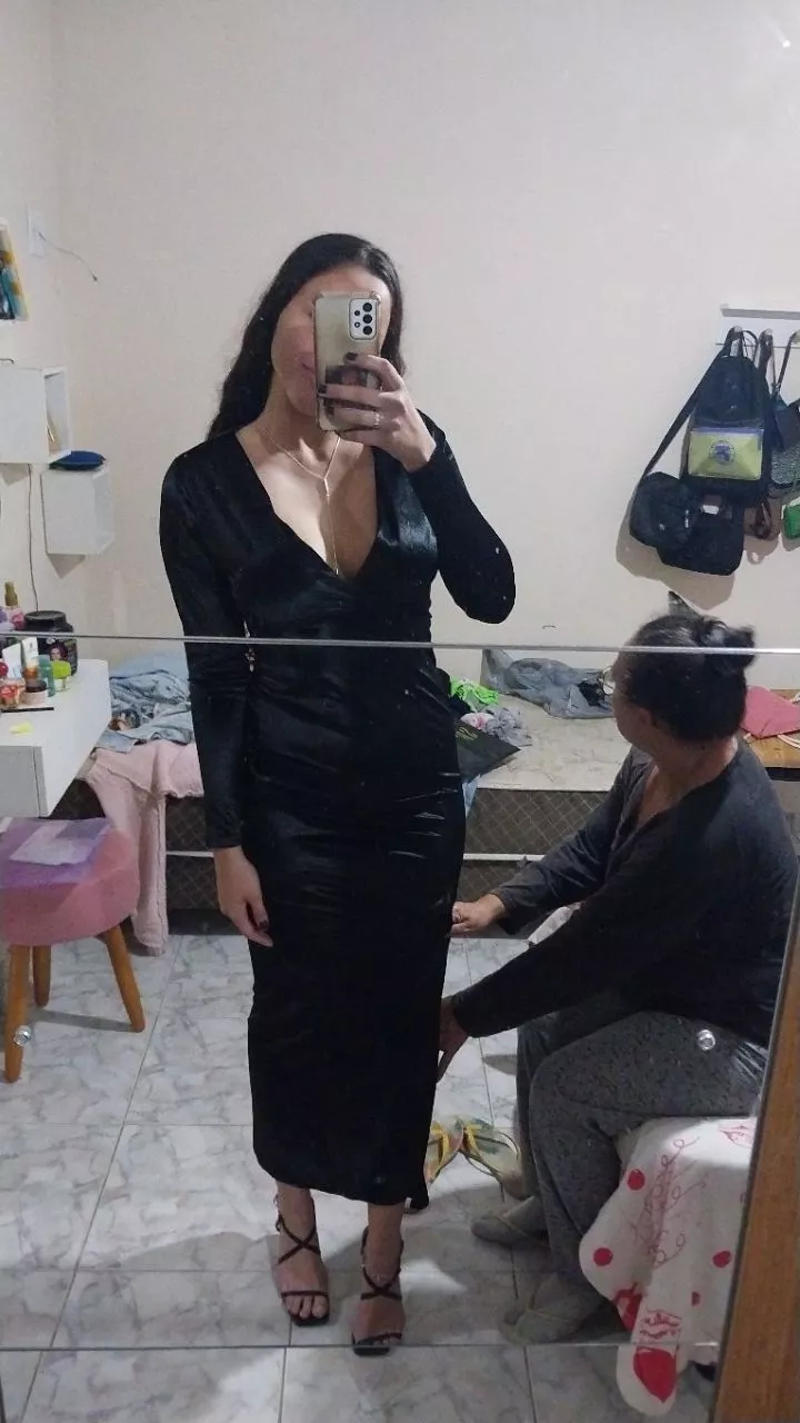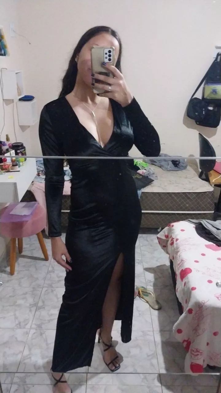 Compre o vestido com bojo, manga longa e fenda lateral direito na loja online Raryel. Aproveite nossos preços baixos e promoções!