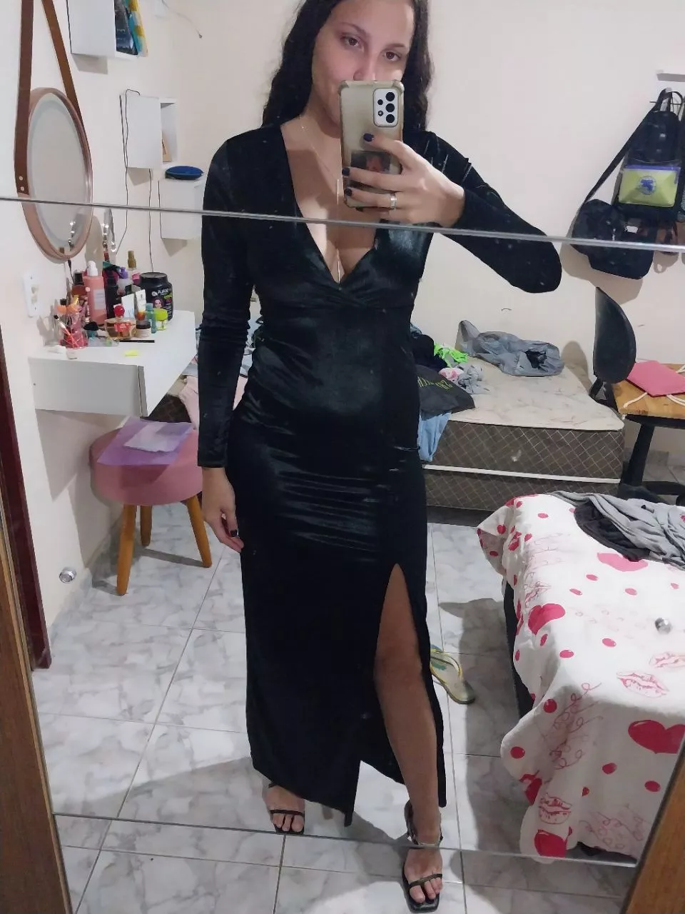 O Vestido de festa com bojo possui mangas longas, fenda lateral direito e zíper invisível atrás. Feito para você arrasar em qualquer ocasião especial. O bojo garante sustentação ao busto, enquanto a fenda adiciona um toque sensual ao look. O zíper invisível nas costas facilita o fechamento da peça. Adquira agora mesmo na loja online Raryel e aproveite nossos preços baixos, promoções e descontos exclusivos!