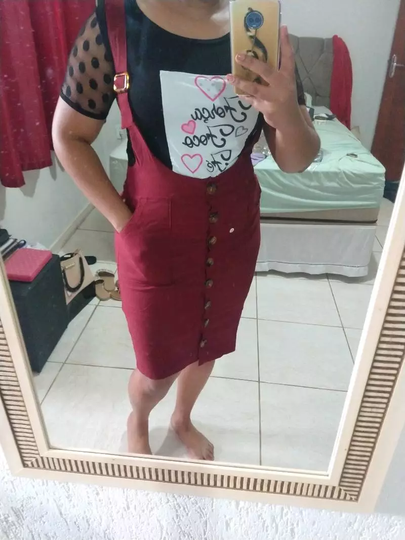 Vestido Evangélico Feminino Saia Jardineira Suspensório Salopete Bengaline - Vinho