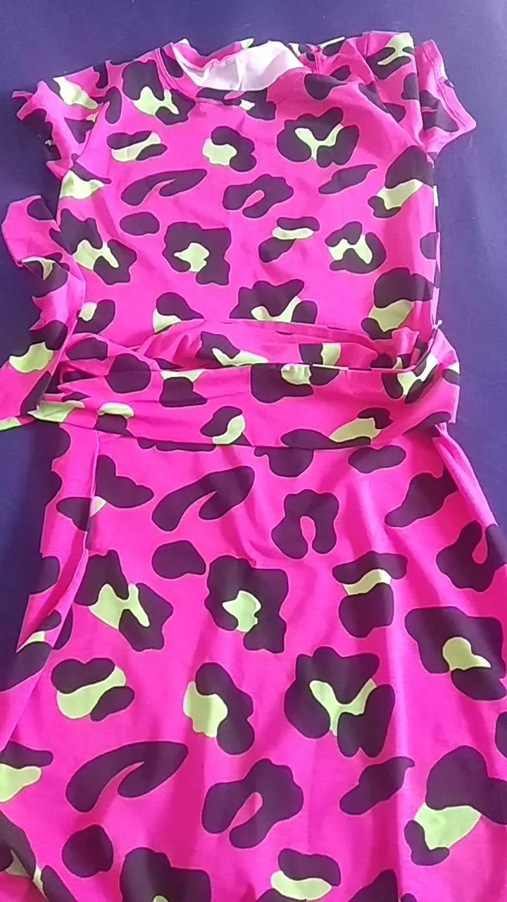 Vestido Longo Animal Print Feminino Midi - Estampado Onça Liso - - Lima c/ Lilas 2