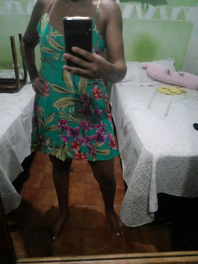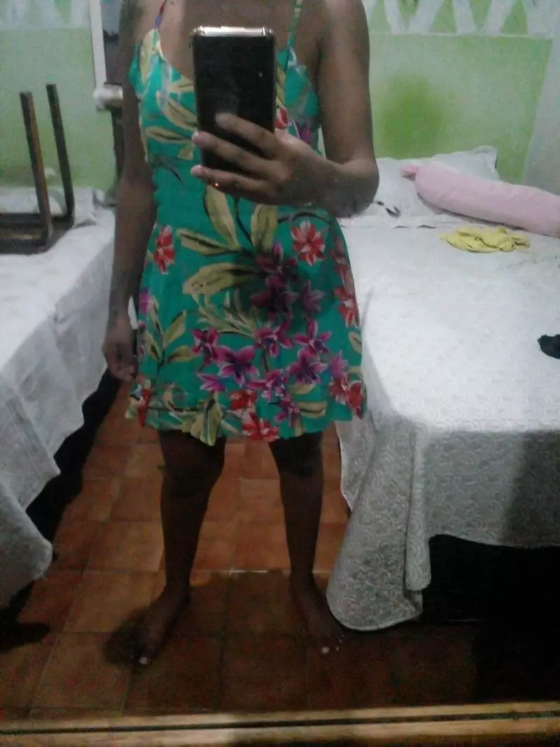 Vestido com Lastex Elastec na cintura no modelo Mullet mais curtinho na frente e um pouco maior atrás Possui alças reguláveis