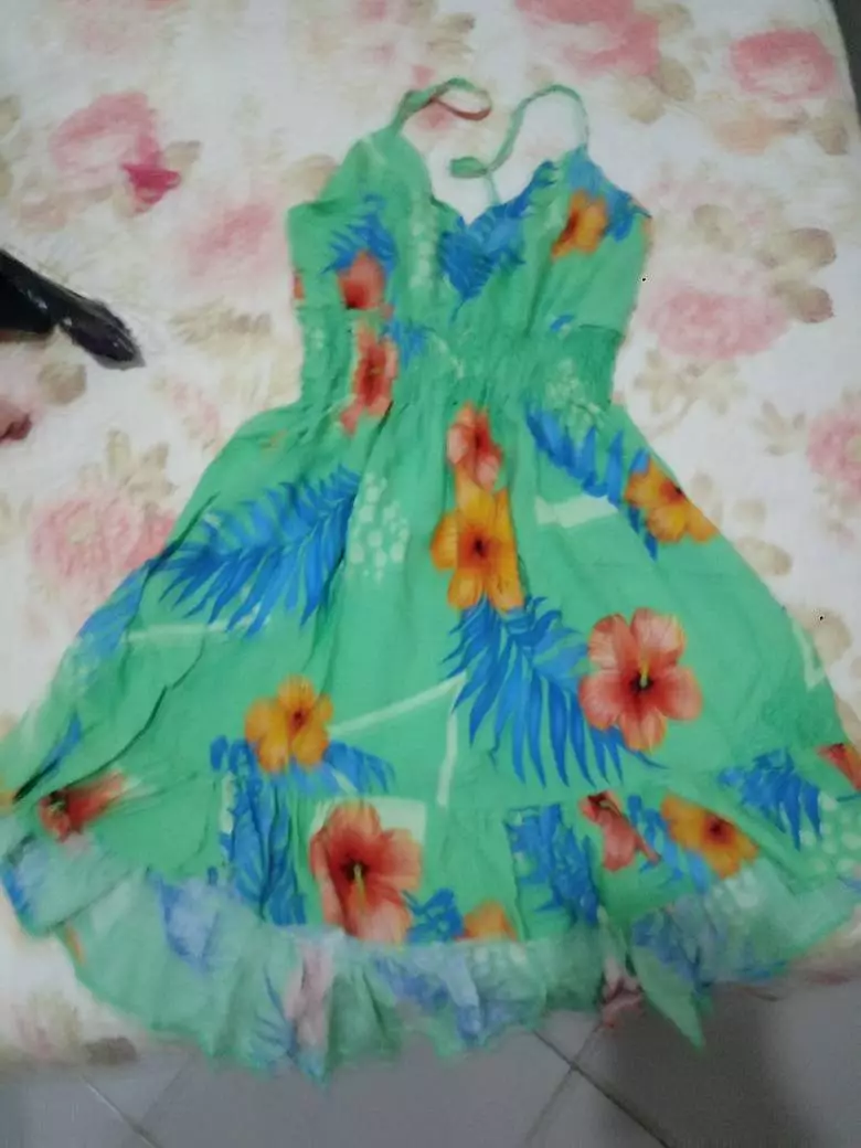 Vestido com Lastex Elastec na cintura no modelo Mullet mais curtinho na frente e um pouco maior atrás Possui alças reguláveis