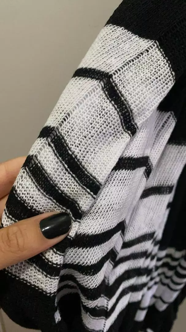 Zig Zag Verão Tricot Kimono Longo Saída de Praia - Branco e preto